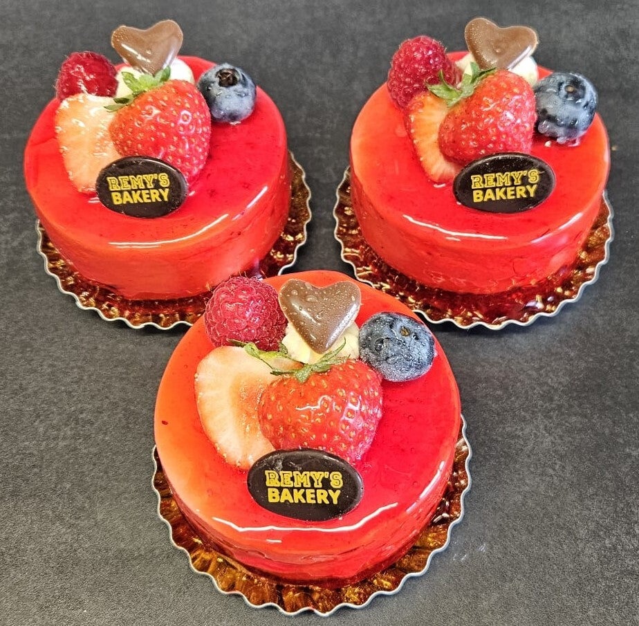 Luchtig en fris bosvruchten bavaroise gebakje, gevuld met bosvruchtencompote - per stuk